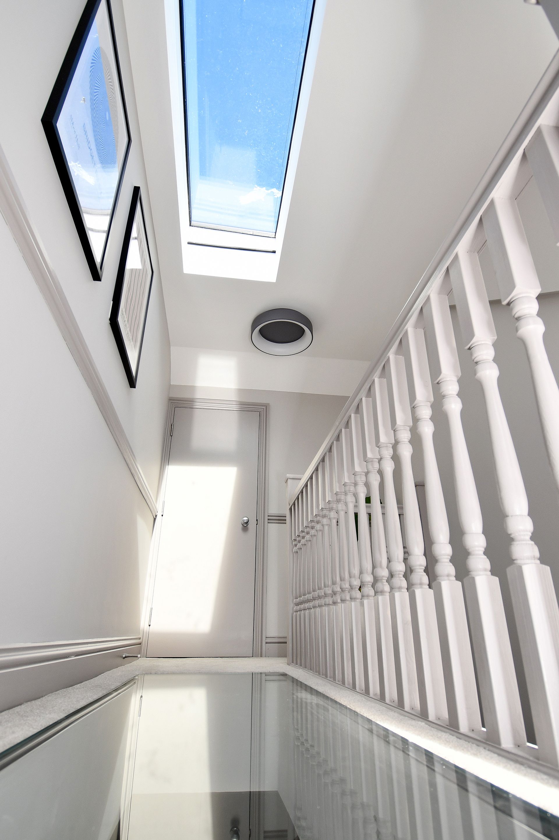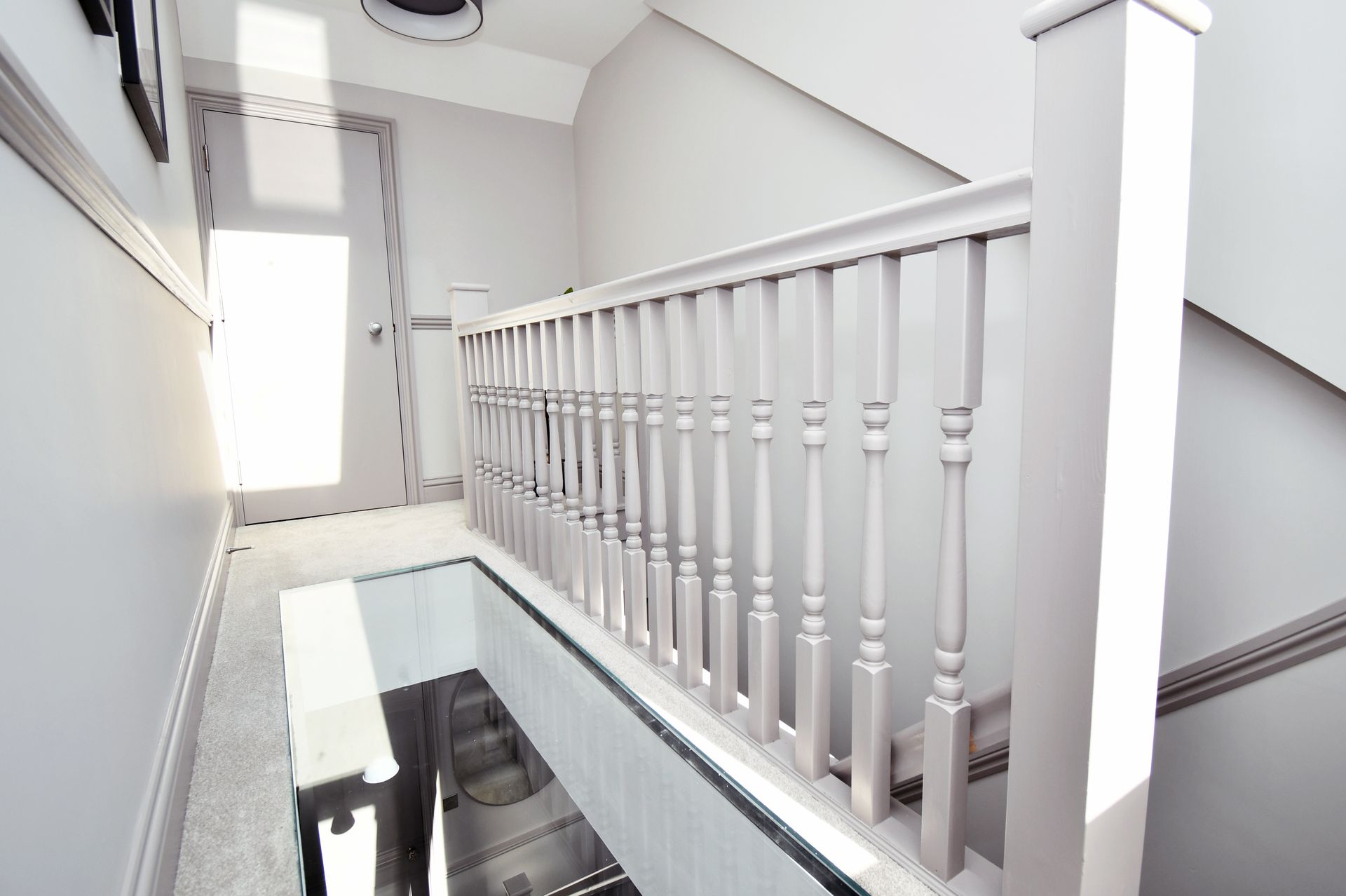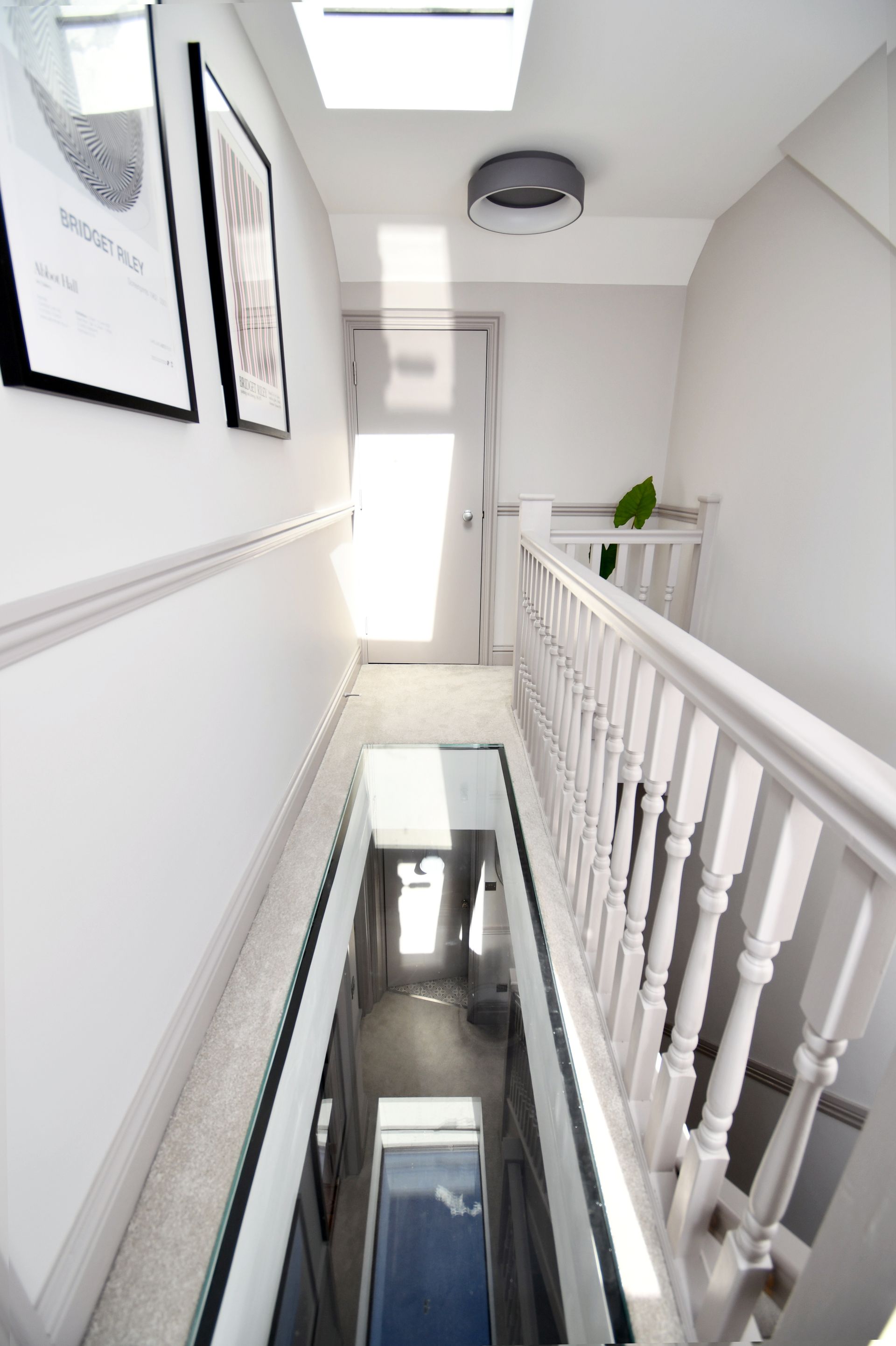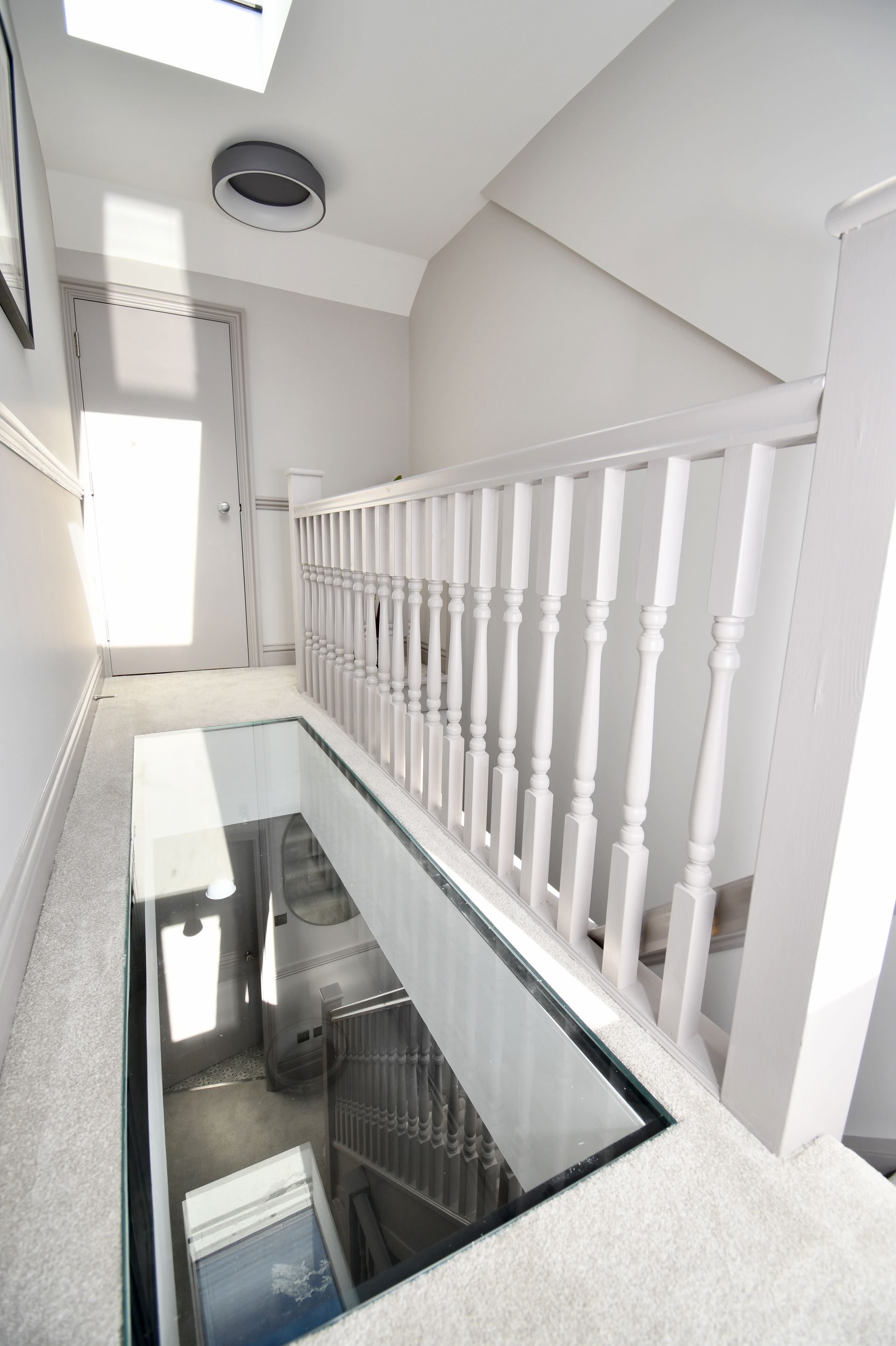 Hastings, East Sussex loft conversion with a bespoke glass floor landing and garage rebuild.