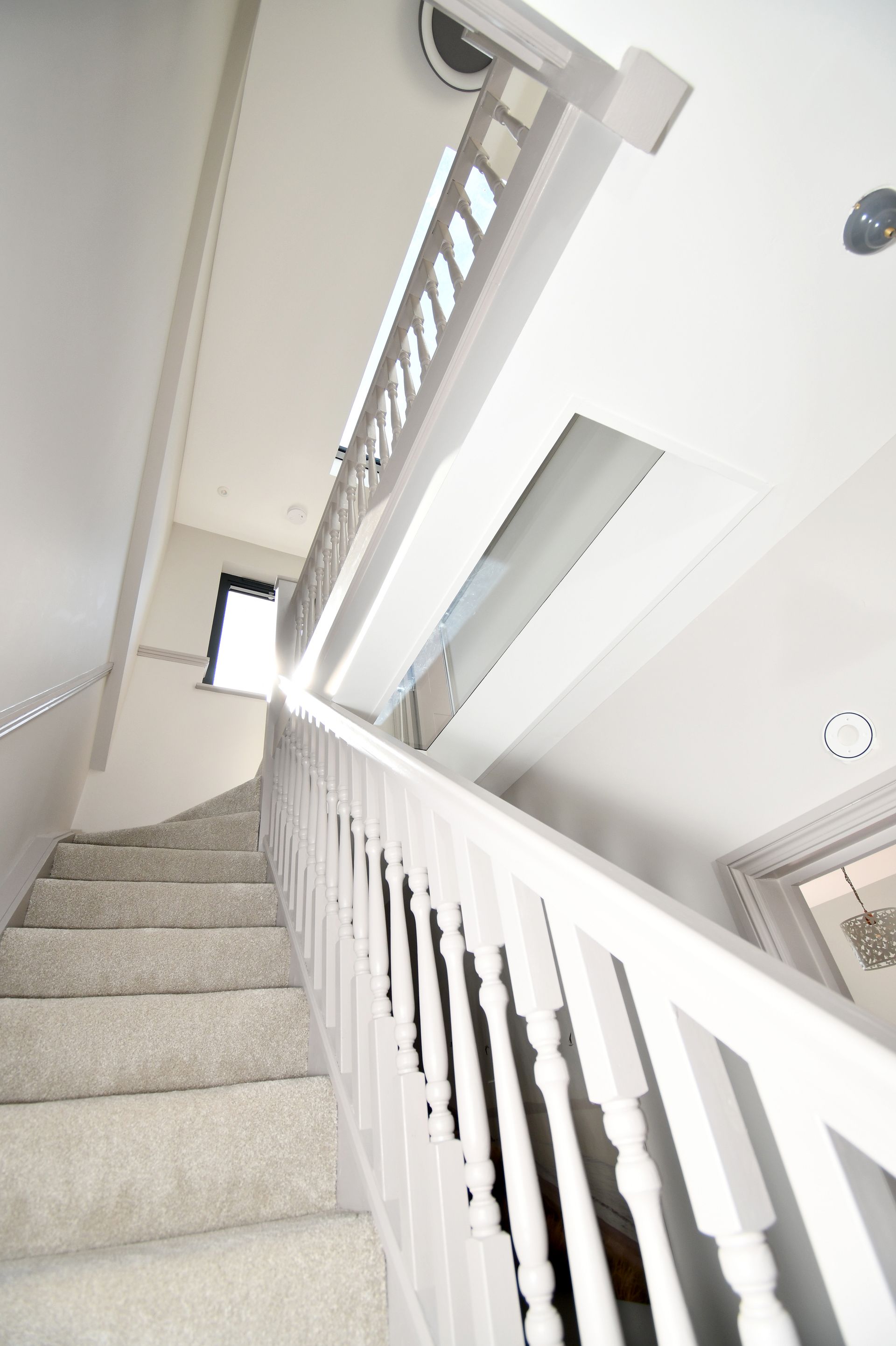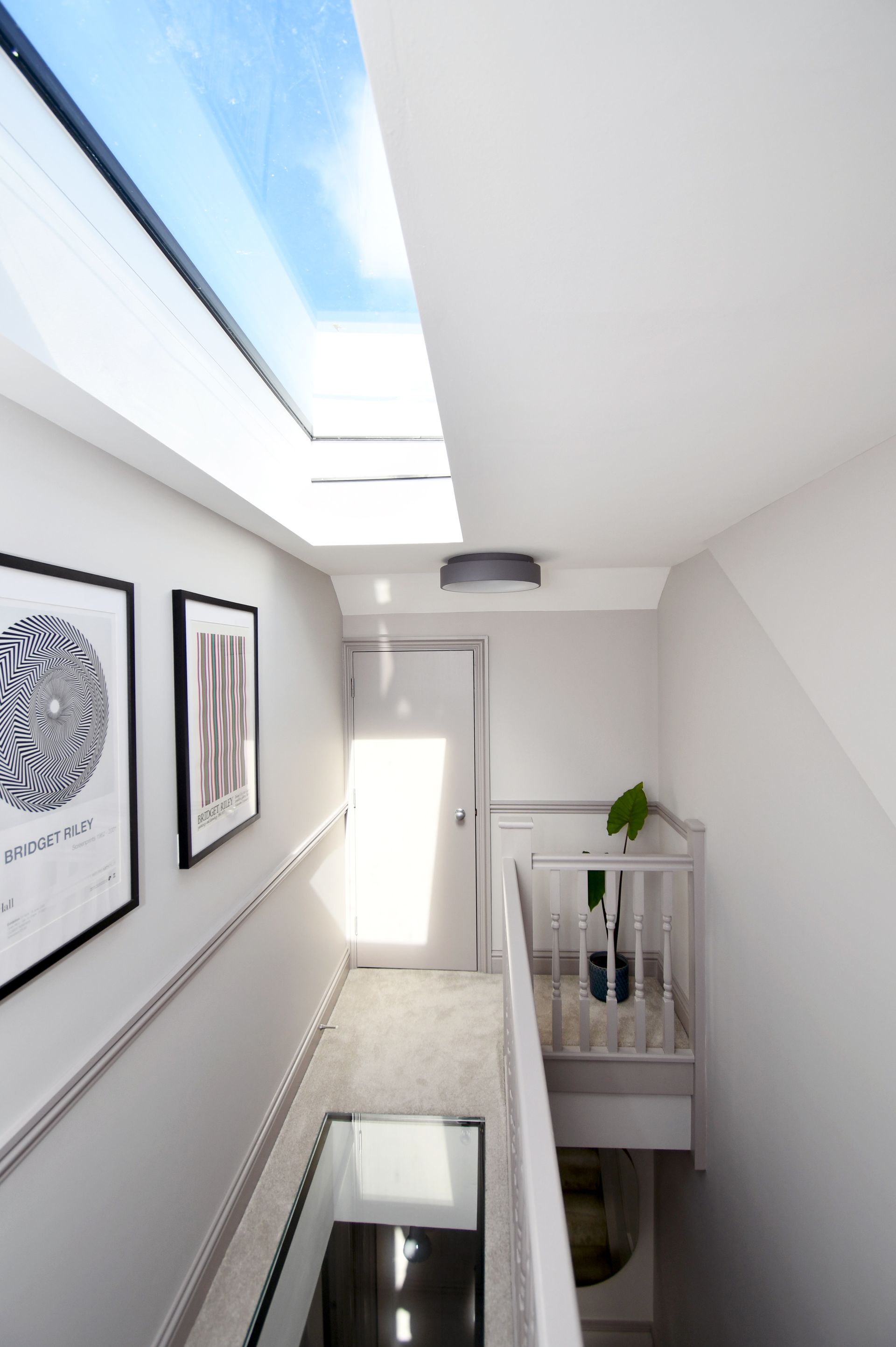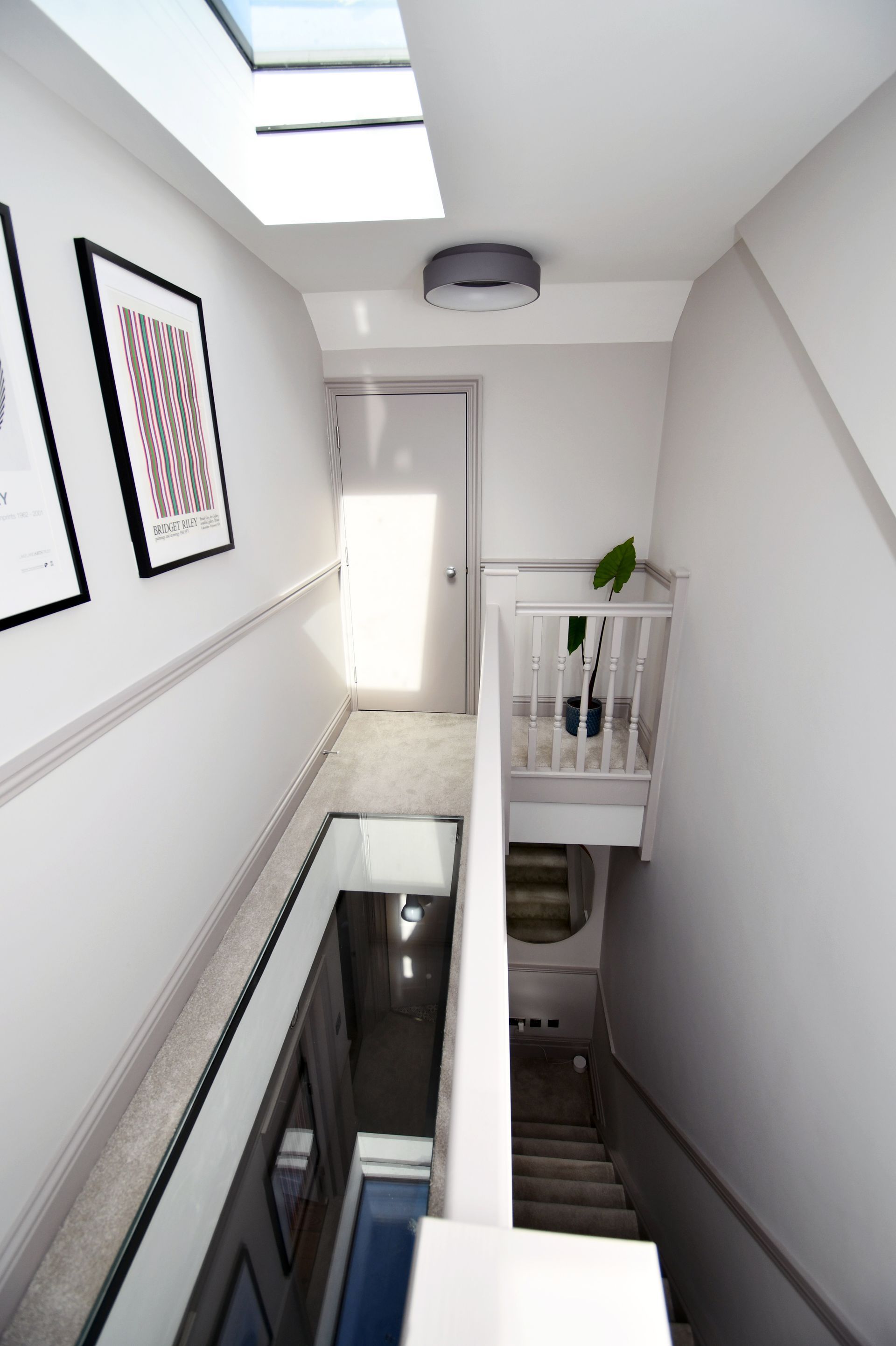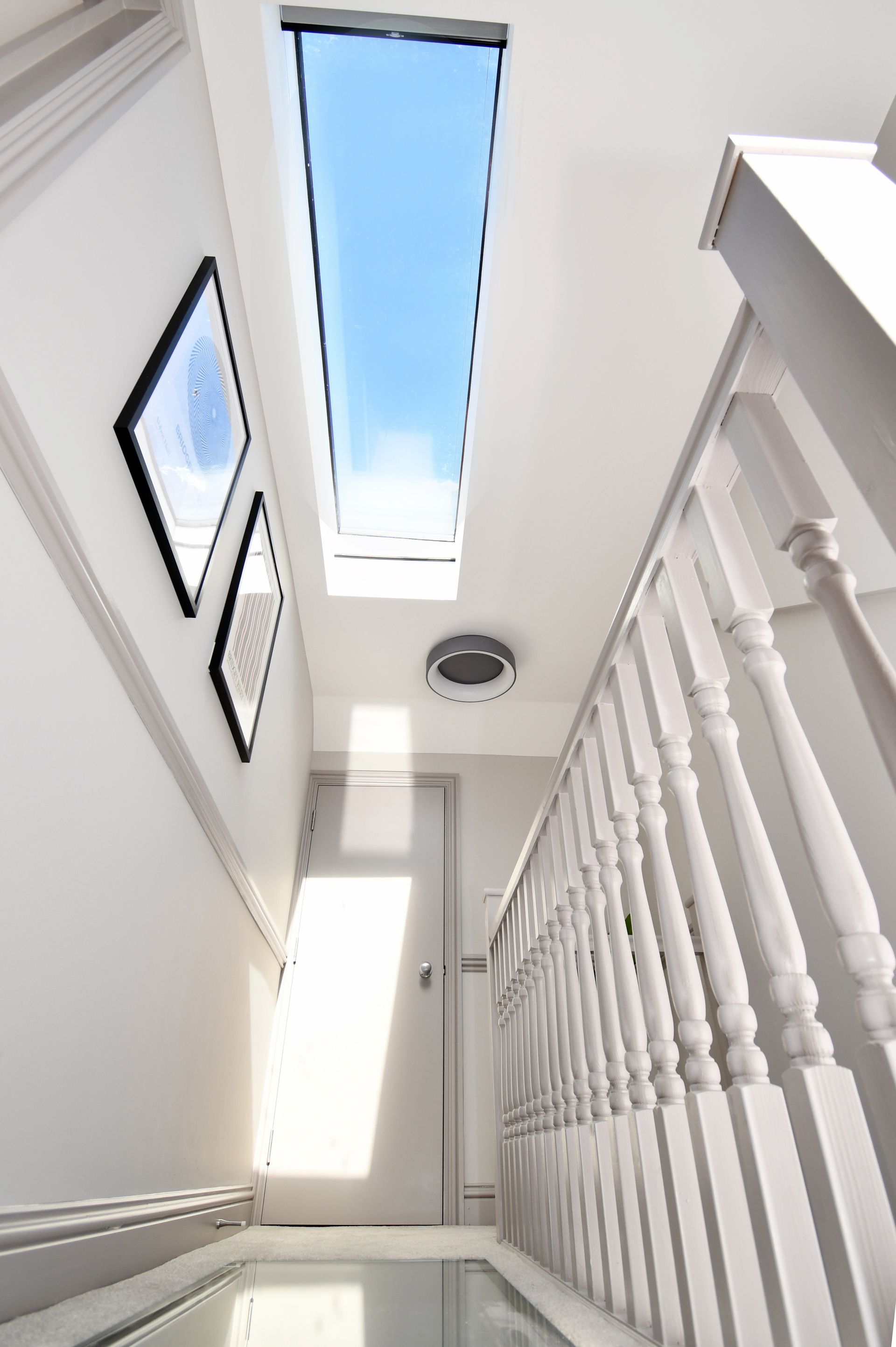Hastings, East Sussex loft conversion with a bespoke glass floor landing and garage rebuild.