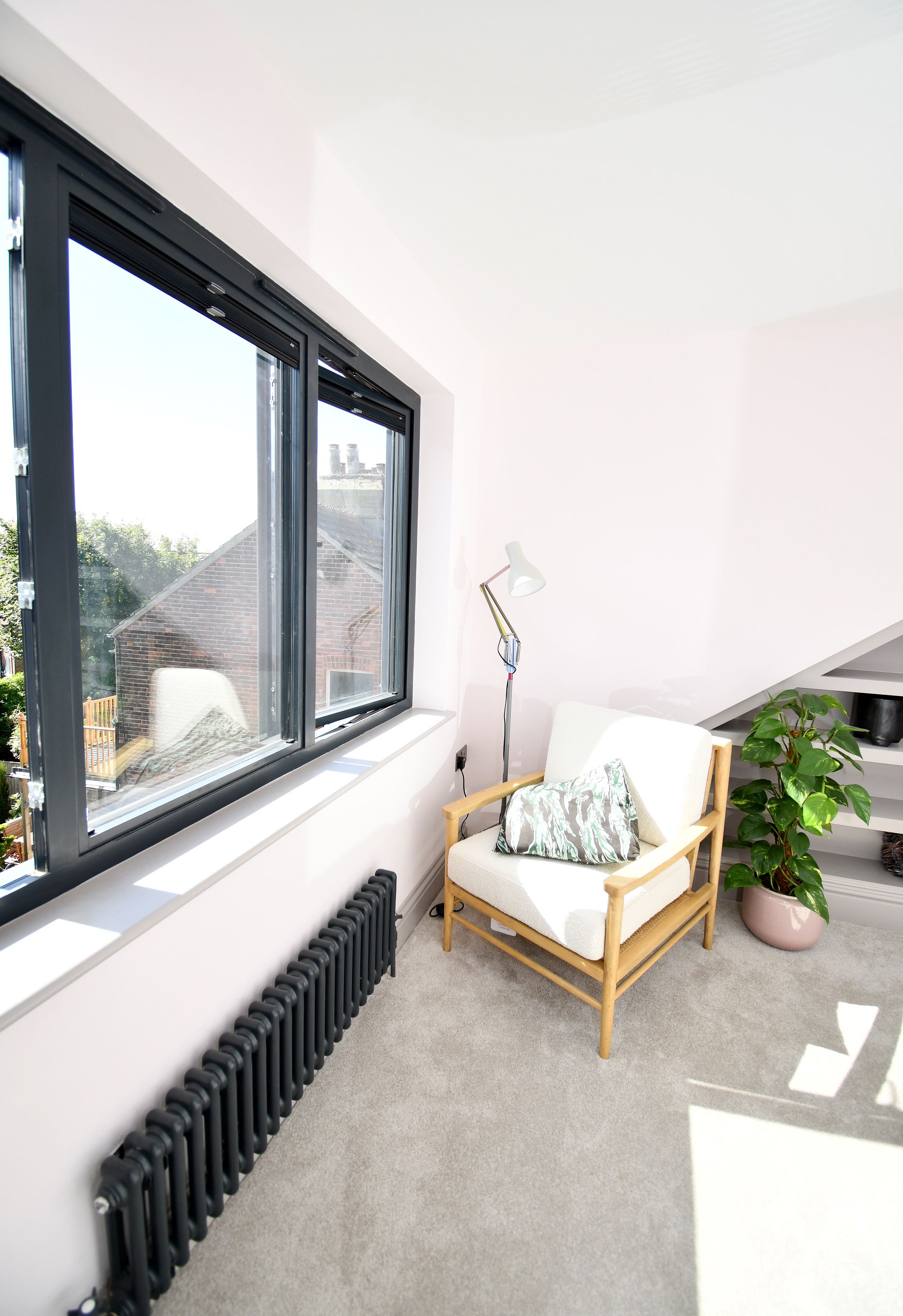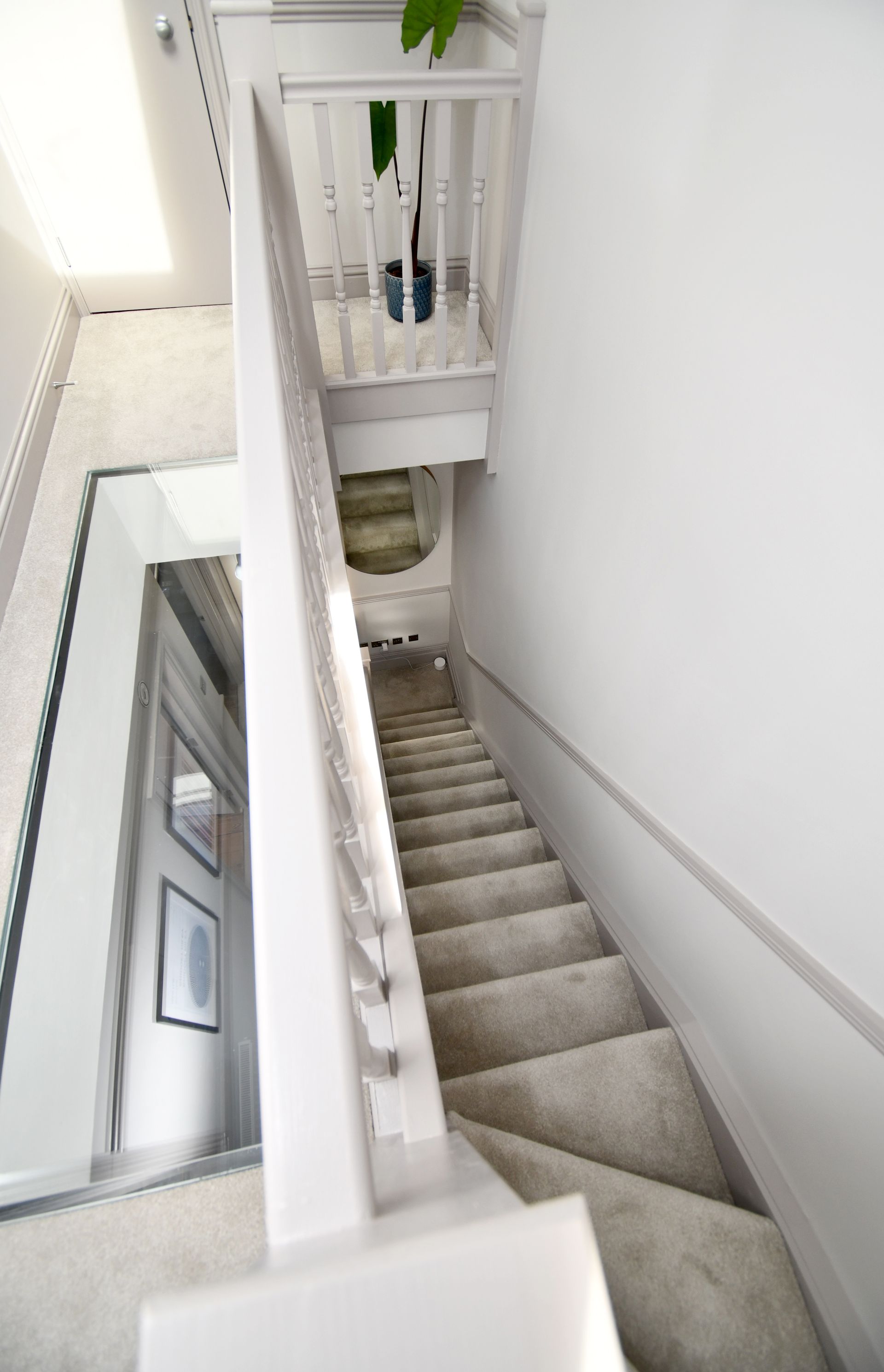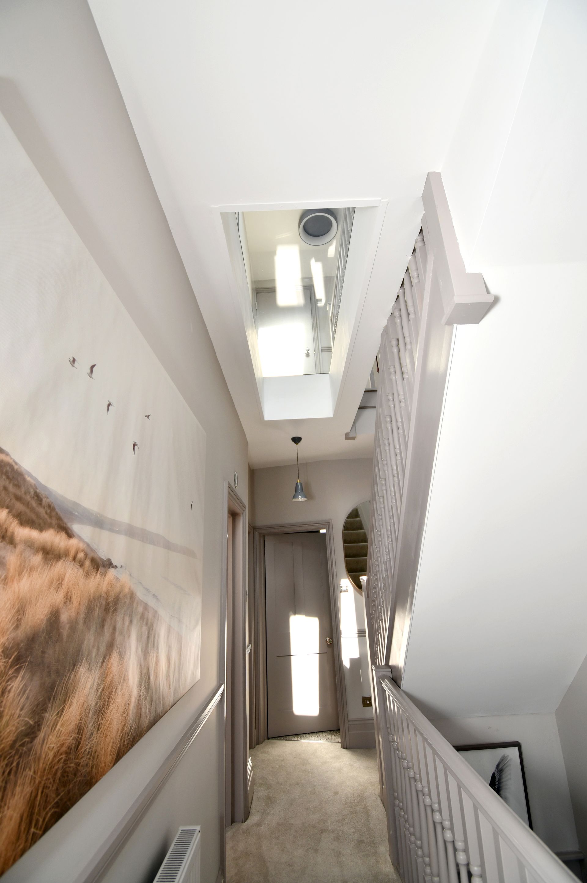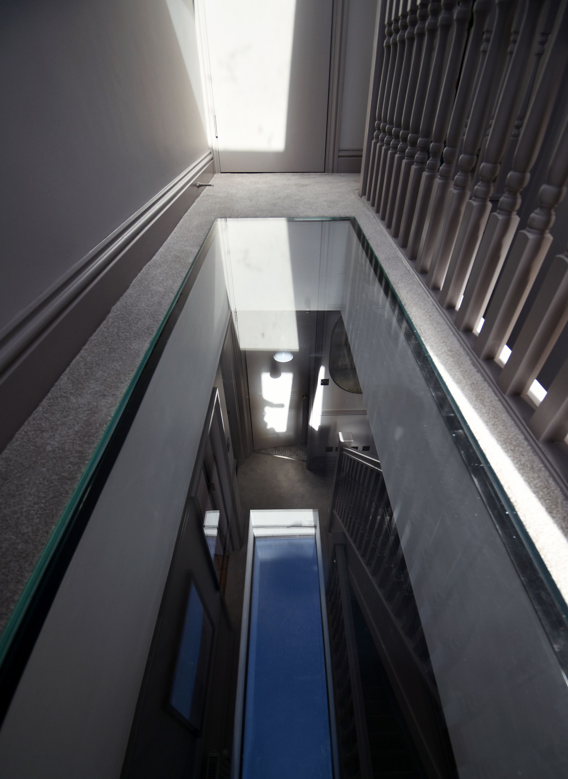 Hastings, East Sussex loft conversion with a bespoke glass floor landing and garage rebuild.